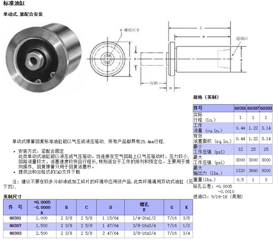 標準油缸-單動式,緊配合安裝