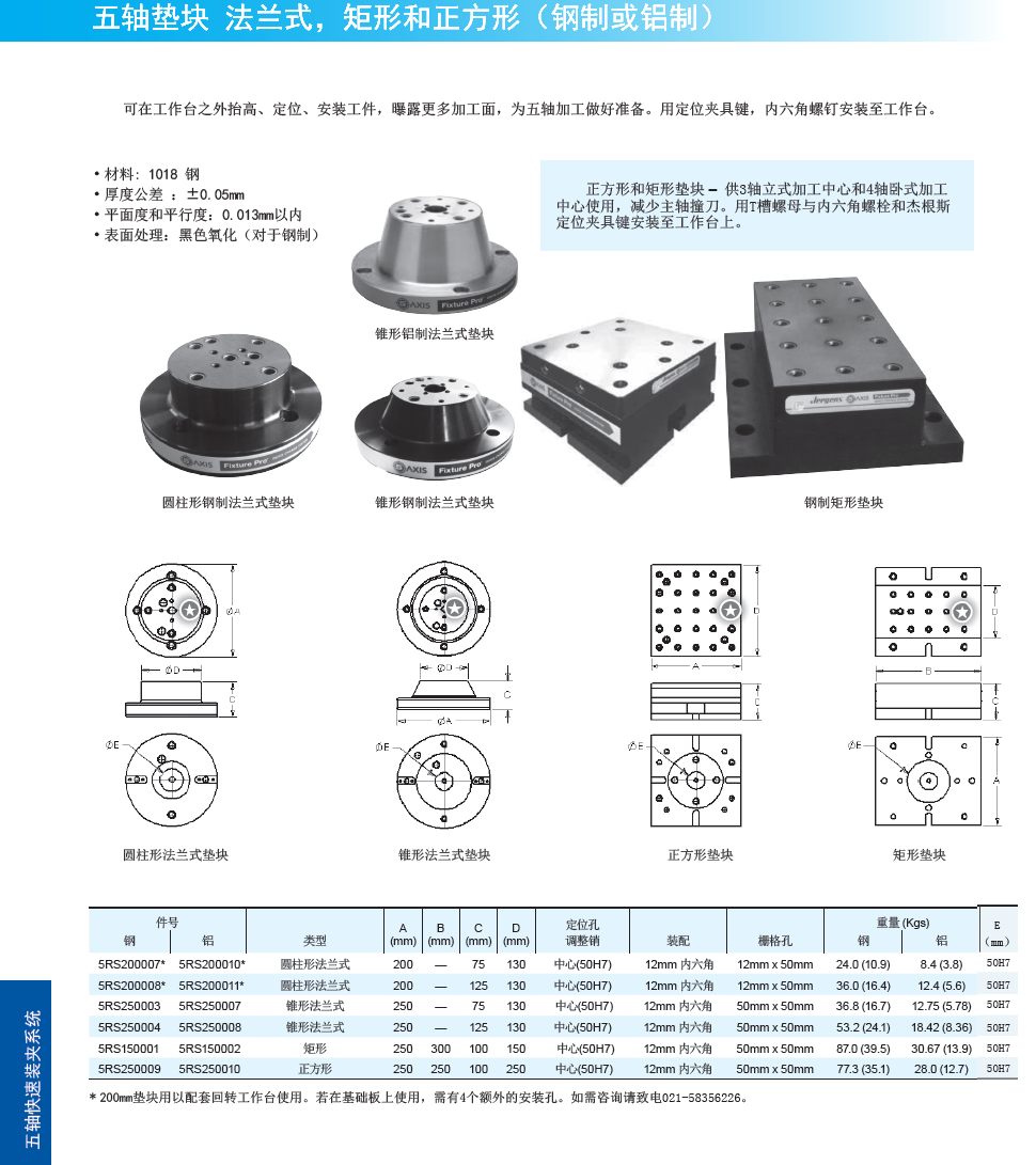 五軸墊塊 法蘭式 矩型和正方形(鋼制和鋁制)