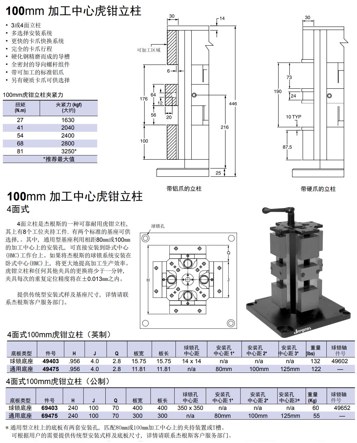 100mm 加工中心虎鉗立柱 4面式