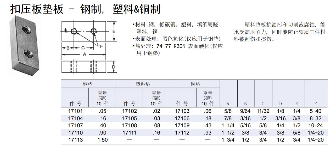 扣壓板墊板 - 鋼制, 塑料&銅制